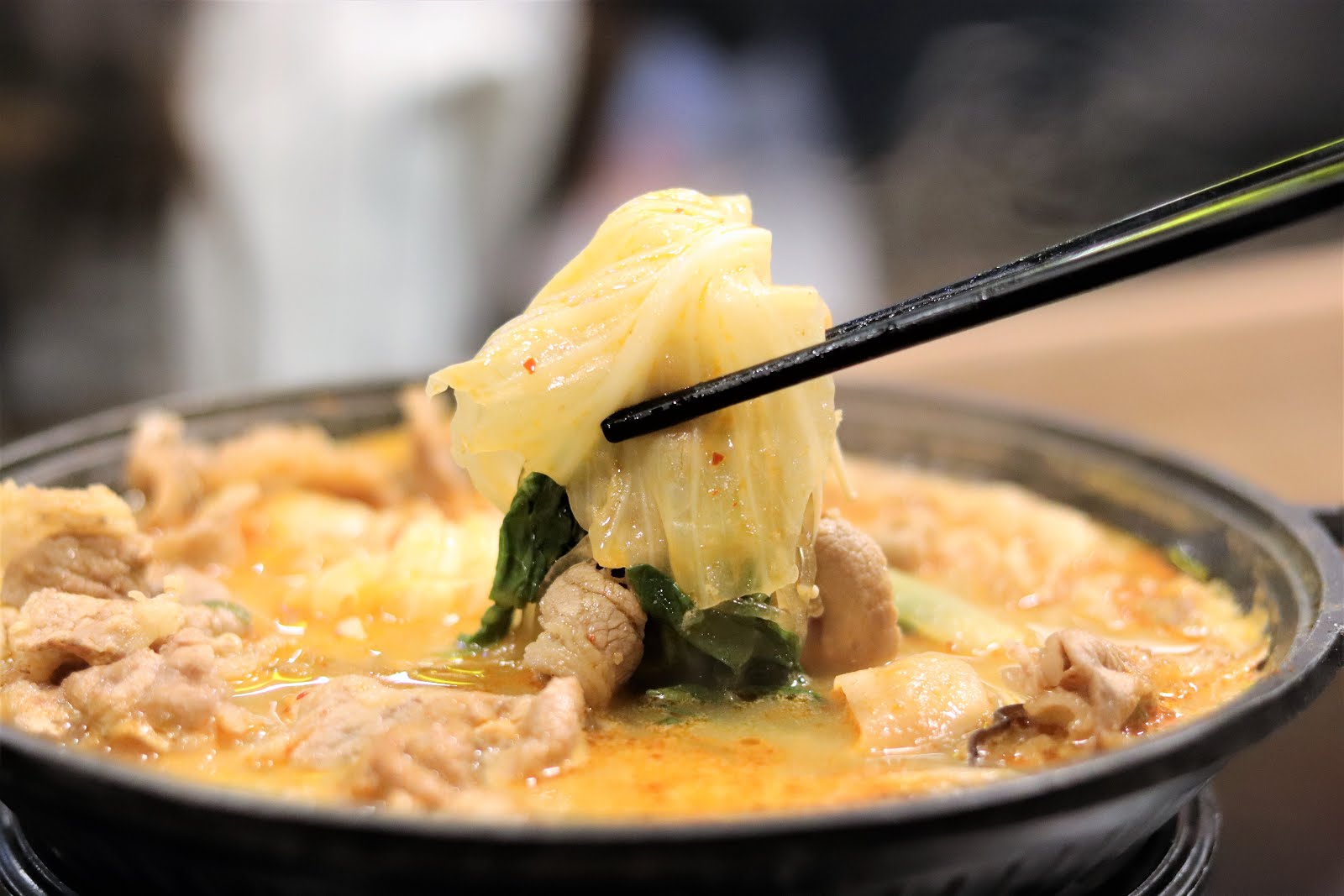 這裡火鍋的特色就是會先將醃製好的肉先煎過,逼出油脂釋放出甜份再放入火鍋中!這作法就有點類似常見的石頭火鍋,將肉先在火鍋中翻炒再加湯,但是小石鍋是分開的,這樣有一個好處就是湯頭不會那麼油,但是各有美味之處,接下來就來看看今天梅森吃了那些吧~
