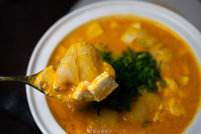 蟹黃豆腐魚,蟹黃般金黃色澤醬汁淋在鮮甜的魚肉和軟綿的豆腐上,