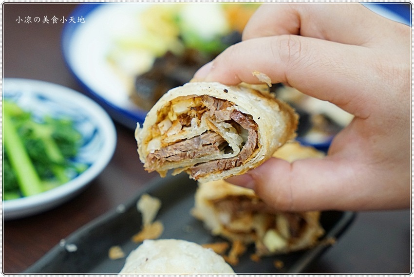 柔韌帶勁的香酥餅皮,裹著香味四溢的牛腱片與西芹,雖然口感與傳統大不同