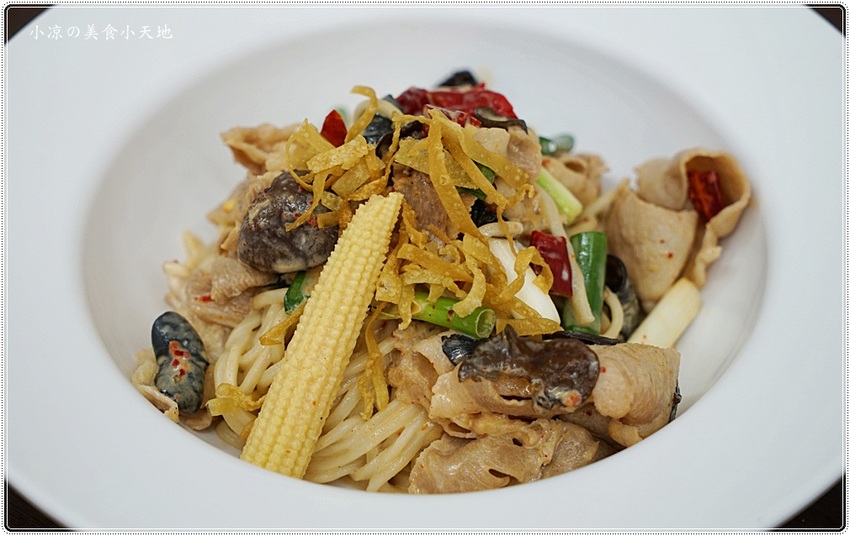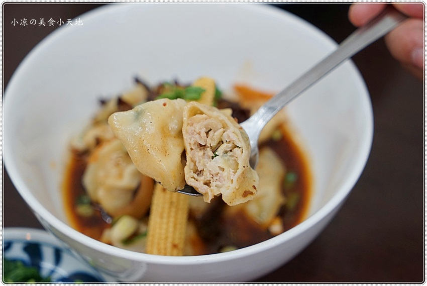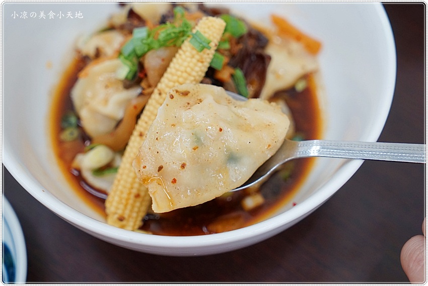 醬汁與飽滿的手工餃子拌勻,多了木耳絲、玉米筍、辣酸菜增添豐富的層次口感~
