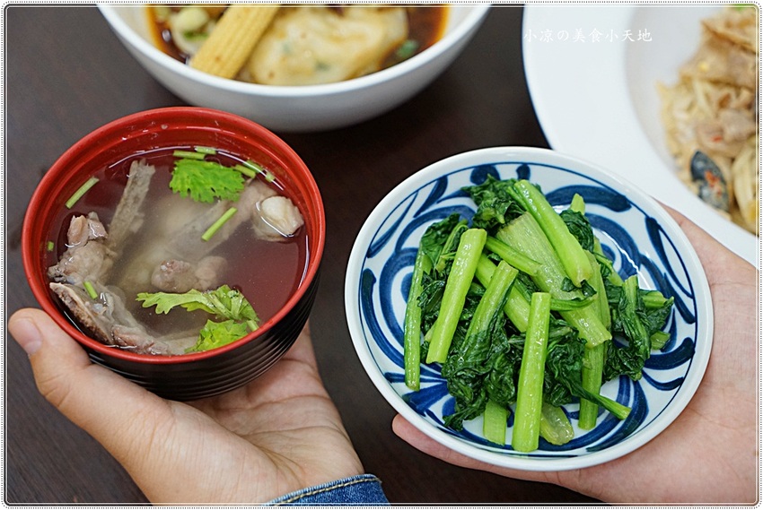 大骨湯相當的清甜好喝、重點還有大骨。燙青菜清脆好食