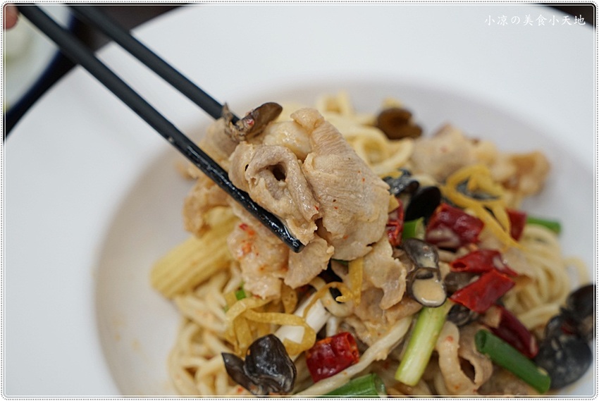 搭配的豬肉片軟嫩好食,看似乾辣椒很多,但吃起來真的不辣唷