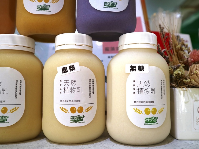 《2060太空吧》還曾是IG打卡熱門店家,因為店內有個美美的漸層飲品:太空星球瓶,是螺旋藻、燕麥豆漿、蔬果豆漿的神奇搭配,好喝又健康,是店內飲品的超級亮點。