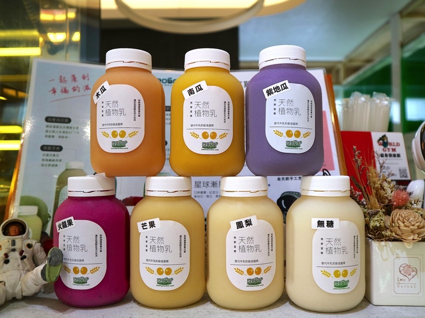 店家的理念就是用植物乳代替牛乳,讓乳糖不耐症、純素者都可喝到台灣人的國民飲品(木瓜牛奶、芒果牛奶…等)。