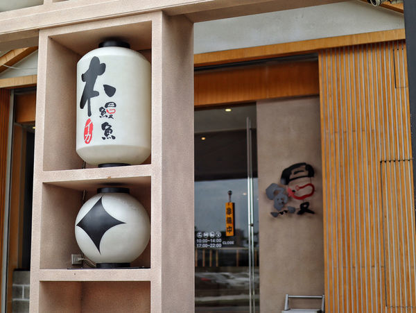 店家店址在台中太平區,鄰近台74線,對面有免費公有停車場,停車相當便利。餐廳大門以黑白與木質配色、加上大型燈籠營造出傳統日系風格,
