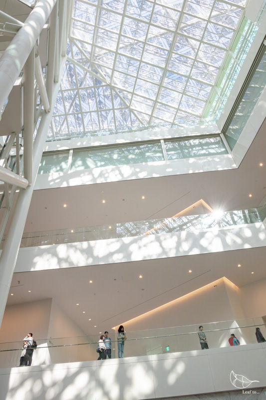 當時正值春節假期,走進大廳盡是滿滿的人潮,不過也因此更加能感受到這個空間有多麼吸引人了:所有人無一不被正閃爍著光影的屋頂奪去目光,抬頭凝望著,正如同建築師所形容的,如同在大樹底下,恣意享受著透過樹葉縫隙流淌而下的美麗摩娑。