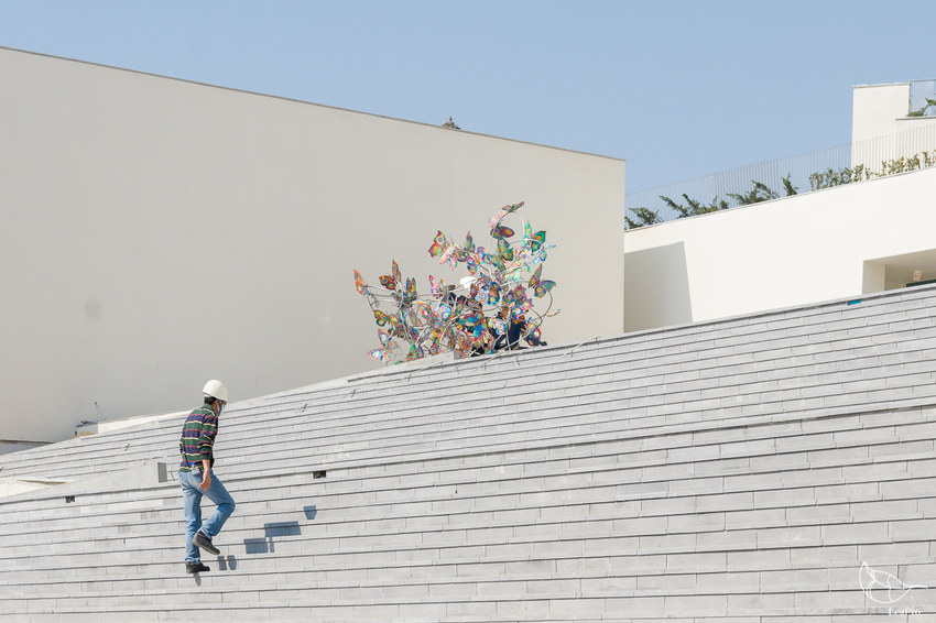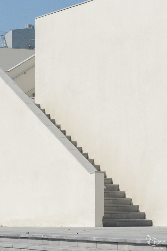 自己則特別喜歡這一個個的立方體之間,作為連結之用的各式大小階梯,想像每一個階梯都連接著不同的、獨特的空間,就像是可以隨著階梯往上攀爬的步伐,通往無垠想像的藝術聚落。