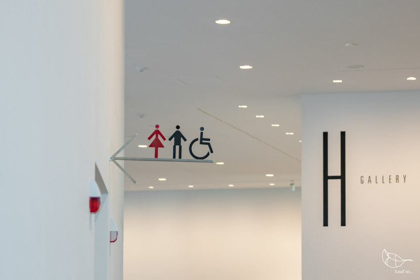 館內的動線標示、或是洗手間標誌設計獨樹一格,在這樣的細節部分保有巧思。