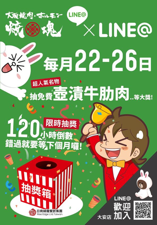 加入Line@,每月還有機會抽獎,這個優惠也別錯過啊!