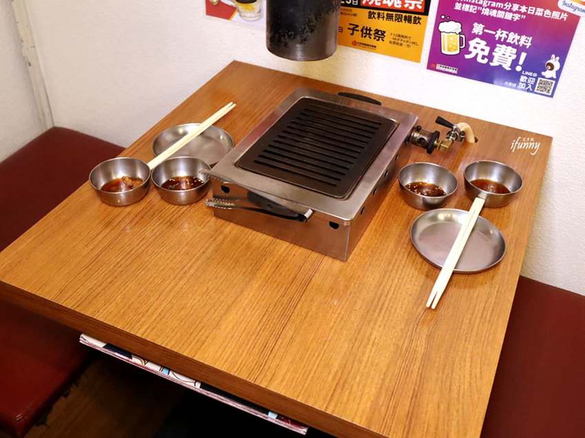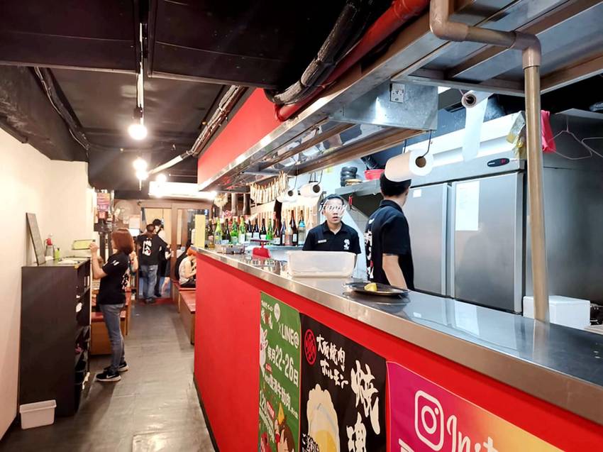 在餐廳的底部,另外備有座位,整間店很有居酒屋的那種熱鬧氛圍。服務人員在桌邊幫忙烤肉的同時,還會跟客人聊天交流。不過在客滿的狀態下,在菜單上標註有金夾子符號的餐點,是一定會有服務人員代烤的,不然有些餐點還是可以讓客人自行享受烤肉的樂趣。
