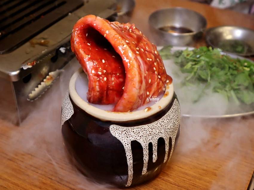 一直不斷冒著白煙的牛肋肉,像是從一個神秘的壺中被拉出來。