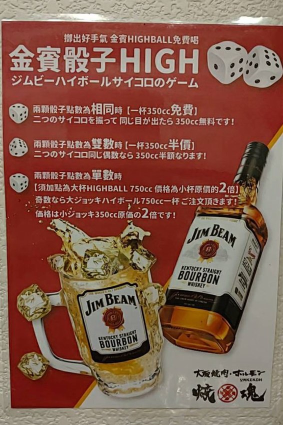 大阪燒肉 燒魂YAKIKON的金賓骰子HIGH的活動,這個活動讓現場氣氛很HIGH,大家可以試試自己的手氣如何喔!