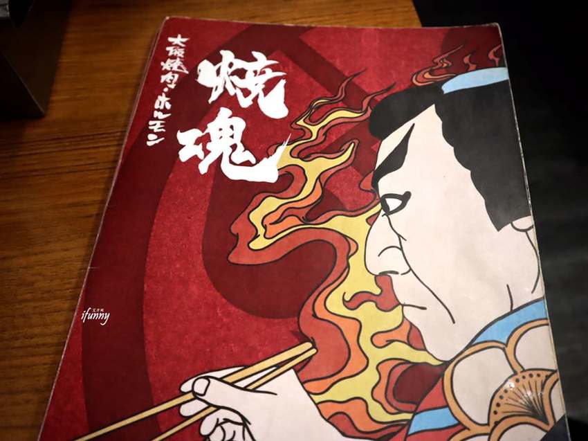 大阪燒肉 燒魂YAKIKON的菜單封面,整個就是艾方妮所形容的-用燃燒生命的那種熱情來烤肉的氣場。