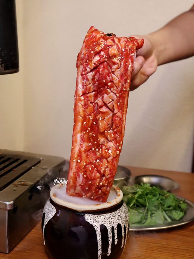 這個就是大阪燒肉 燒魂YAKIKON的招牌美味-壺漬特製調味牛肋肉,幾乎是每桌必點的。
