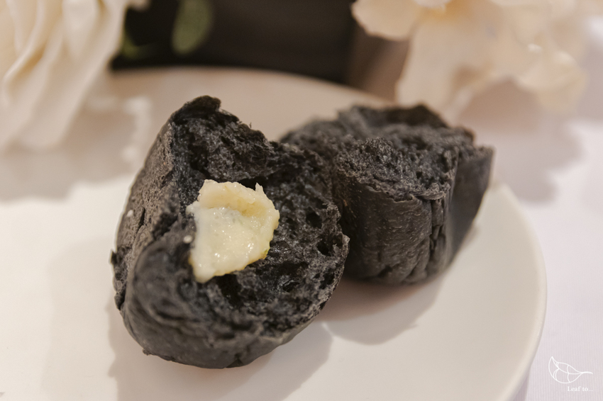 而口感柔軟的竹炭餐包,抹上檸檬奶油一起入口的清香氣,讓奶油一起變得清爽,口感厚實但不厚重,淡淡酸甜味讓我個人頗喜歡。