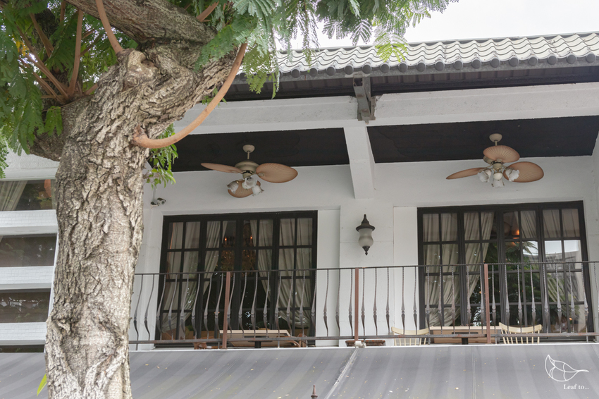 白色矮牆和深鎖的木質大門,增加了一股神祕的氣氛;可以稍微窺見這幢獨棟樓房,二樓陽台還懸著吊扇和壁燈,看起來頗有幾分異國的優雅感。這讓我想到了好友在造訪上海時傳來的照片,像是法租界的獨特風景,一幢幢歐式風格小洋樓,伴著街道上成排的梧桐樹,連景緻都可以顯得文藝腔十足。