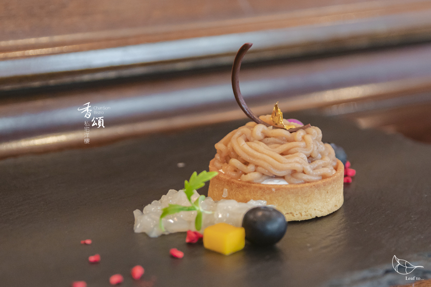 餐後送上的甜點,本來自己對於整體套餐之後的甜點品項都不會太過期待,不過當上桌時看見是我最喜歡的蒙布朗品項,真的讓我眼睛為之一亮。