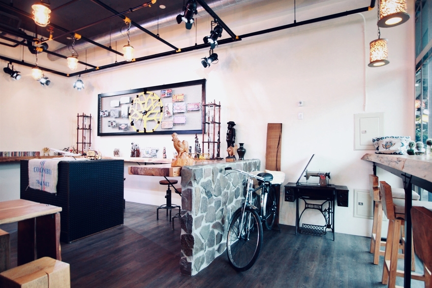 罕如藝術咖啡,裝潢設計屬簡單的工業風設計,大量採用原木的設計概念,店內空間乾淨寬敞。