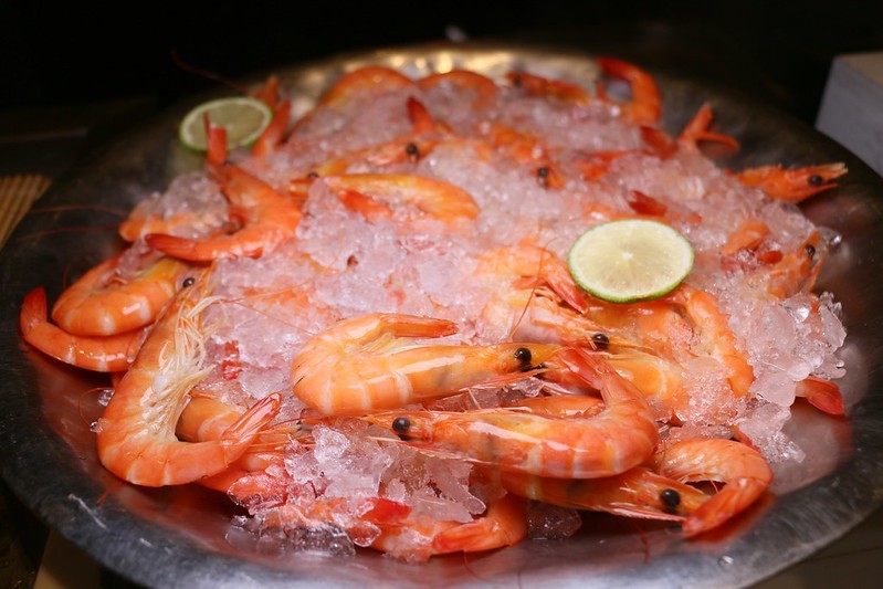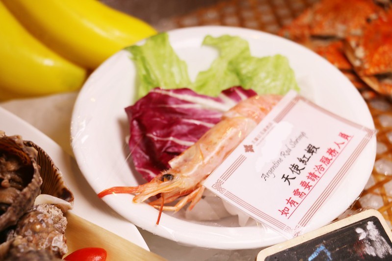 生食級的天使紅蝦需請服務人員幫忙夾取