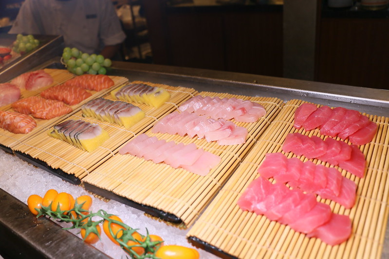 生魚片有鮭魚、鮪魚、旗魚、鯛魚、尼信...等