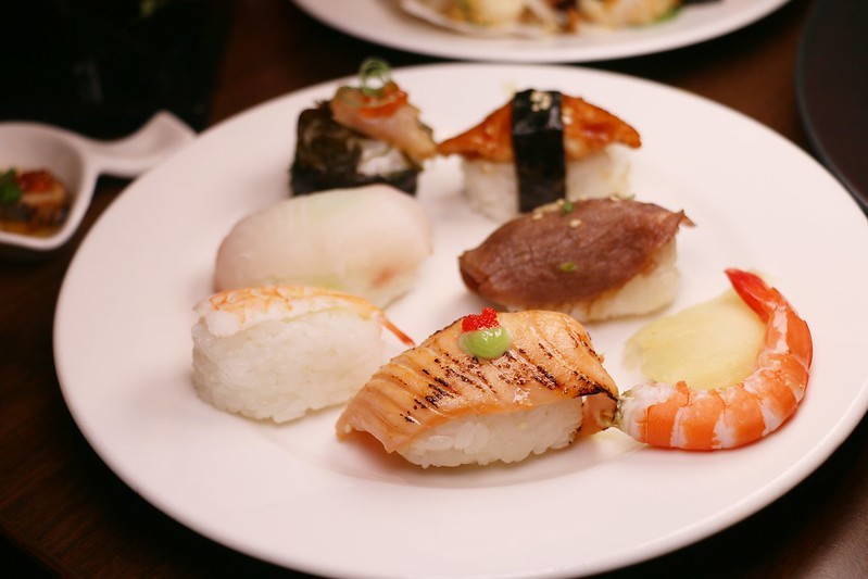 有牛小排、鮭魚肚、旗魚、鰻魚握壽司
