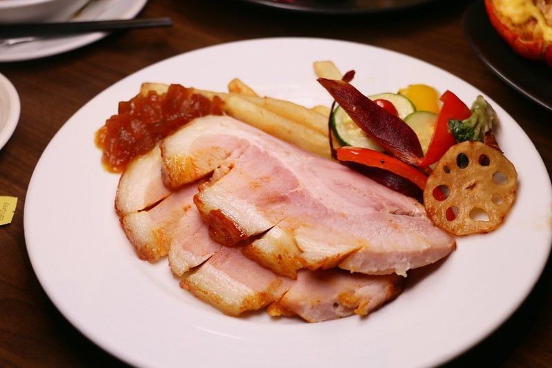龍眼蜜烤火腿也很嫩,可搭配旁邊的柳橙蘋果醬