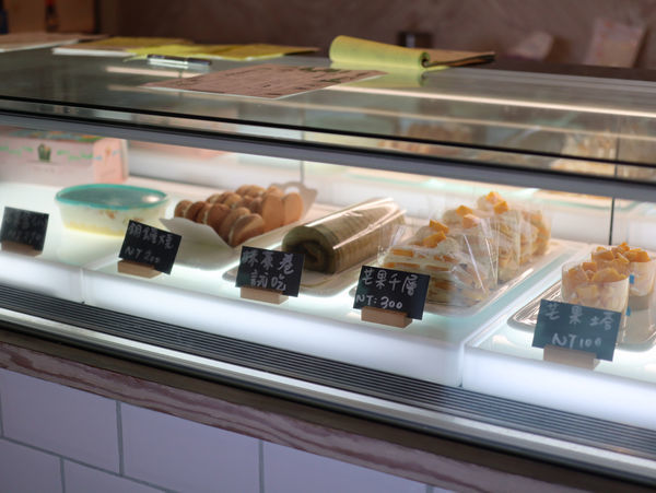 冷藏玻璃櫃中也有著當天現做的各式甜點、蛋糕可以選購。這裡以自取跟宅配為主,暫時沒有內用喔!建議來之前可以先電話或者粉絲團預定確認。
