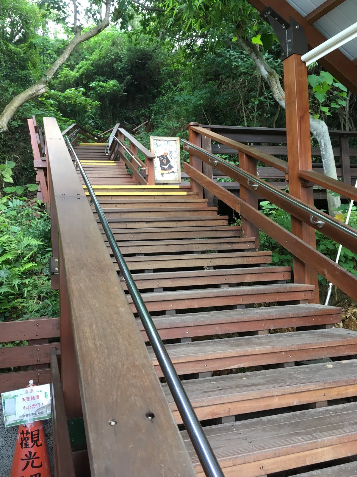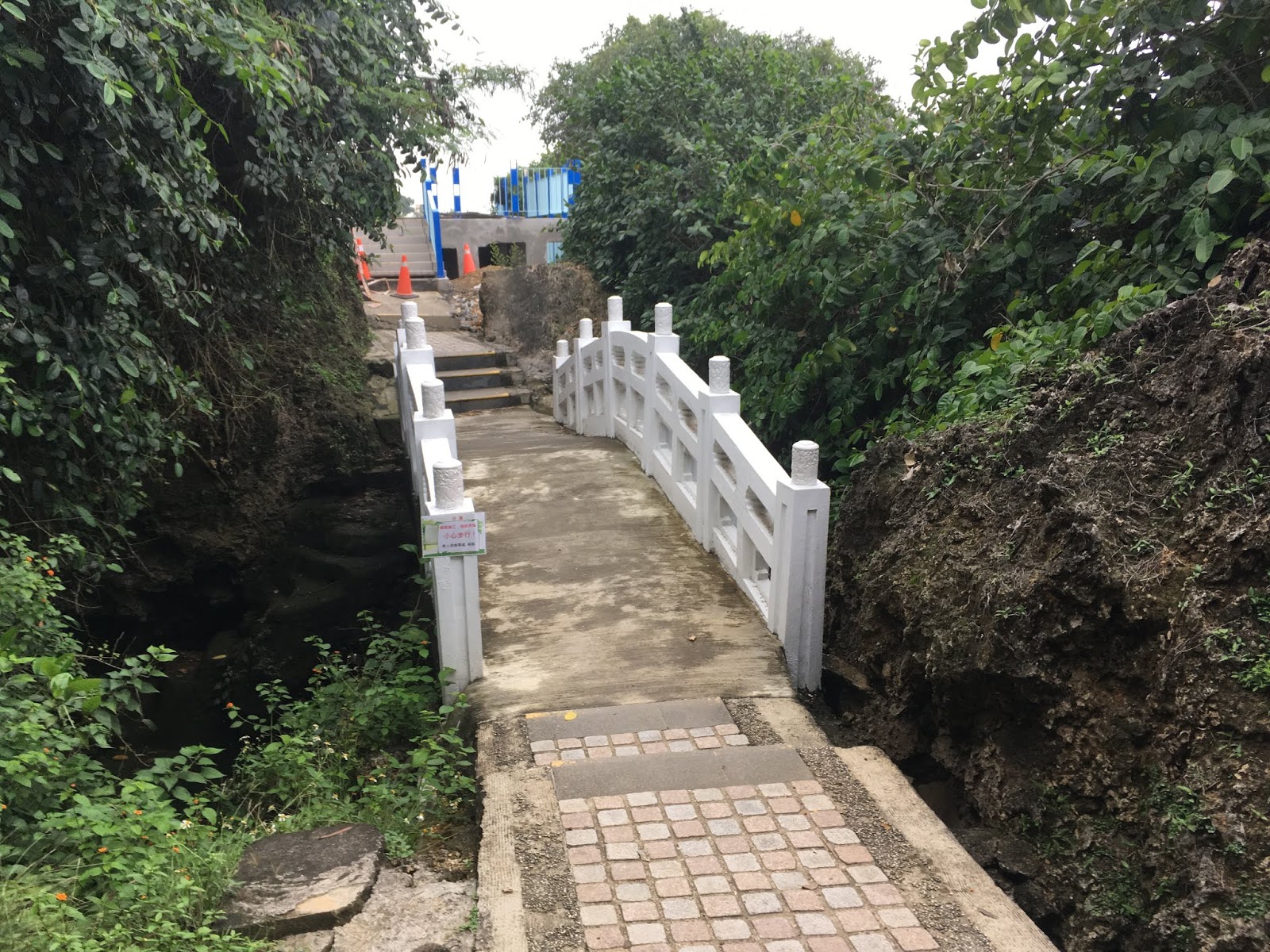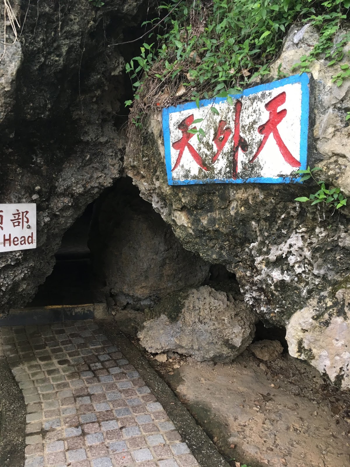 「山豬溝」是沿著天然珊瑚礁地形而開發的景點,木棧道走起來很輕鬆,兩旁生長著雀榕及攀藤植物,走來舒爽宜人。印象最深的是如同泰山壓頂的「礁岩石洞」,低下身子穿過時很有壓迫感,以及低矮帶狀的「防空洞」,也讓我驚嘆以前人在裡面躲避空襲,柔軟度實在太好了。