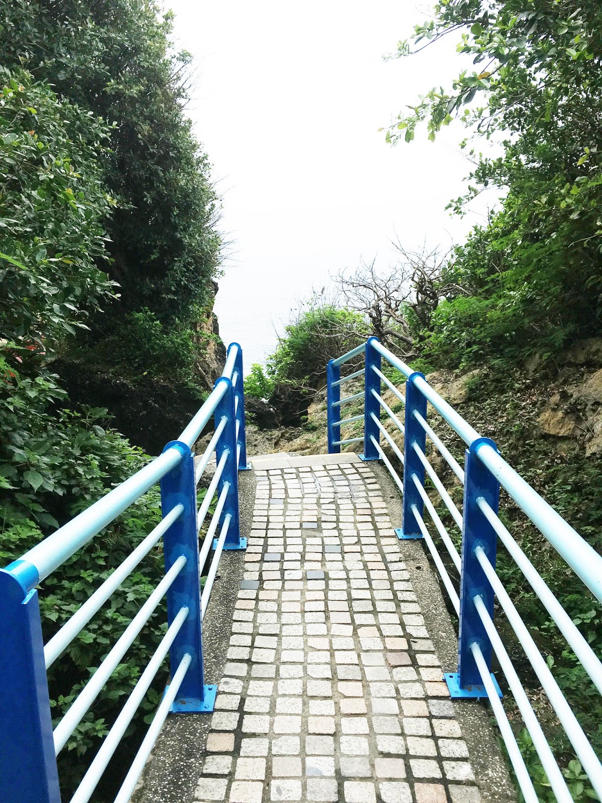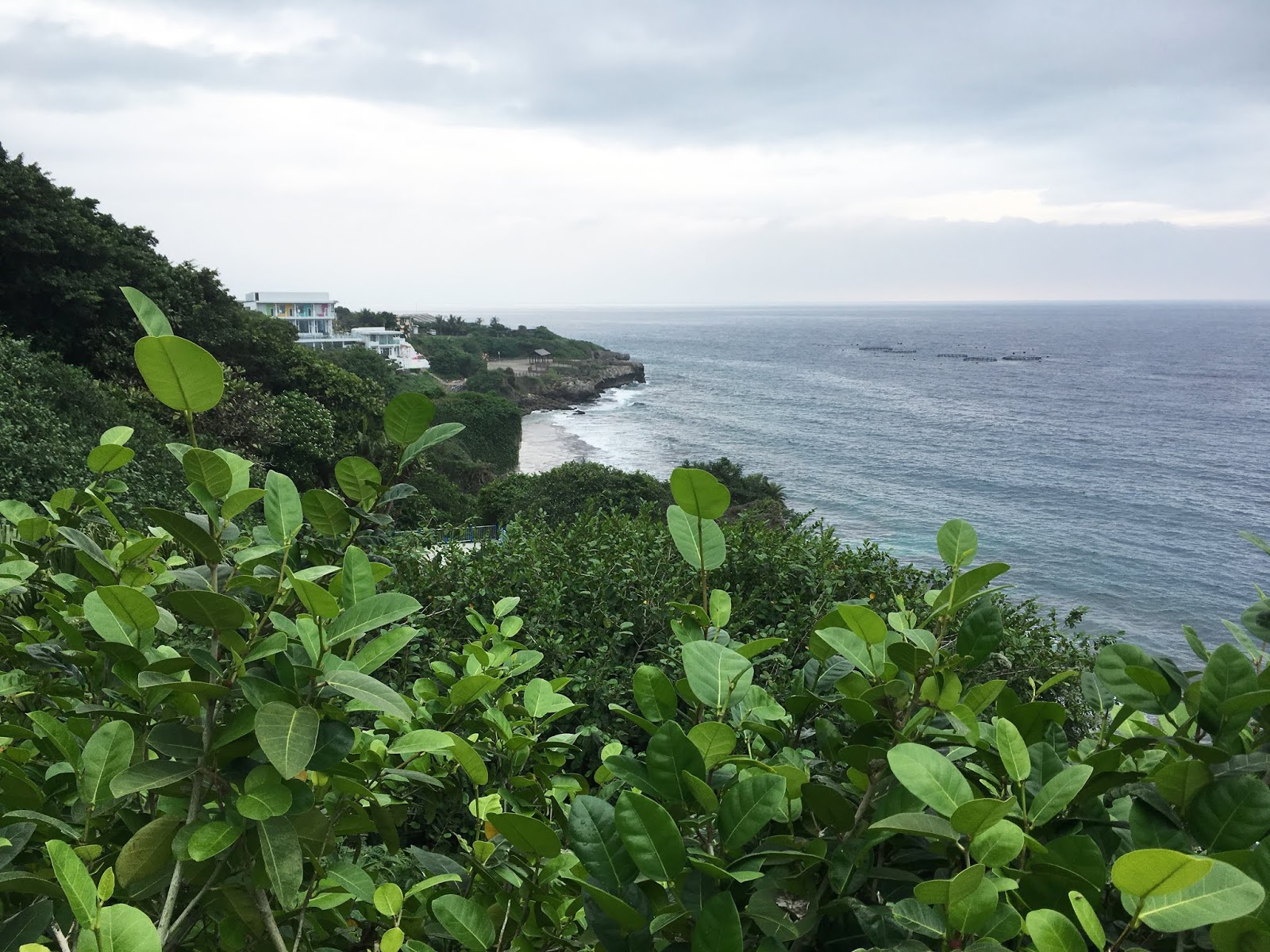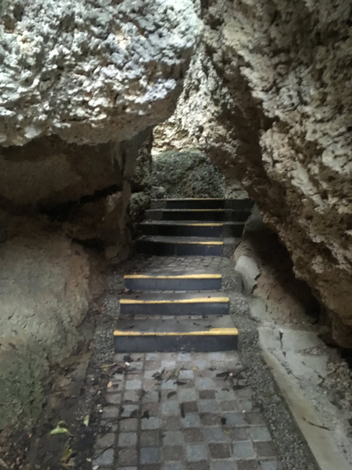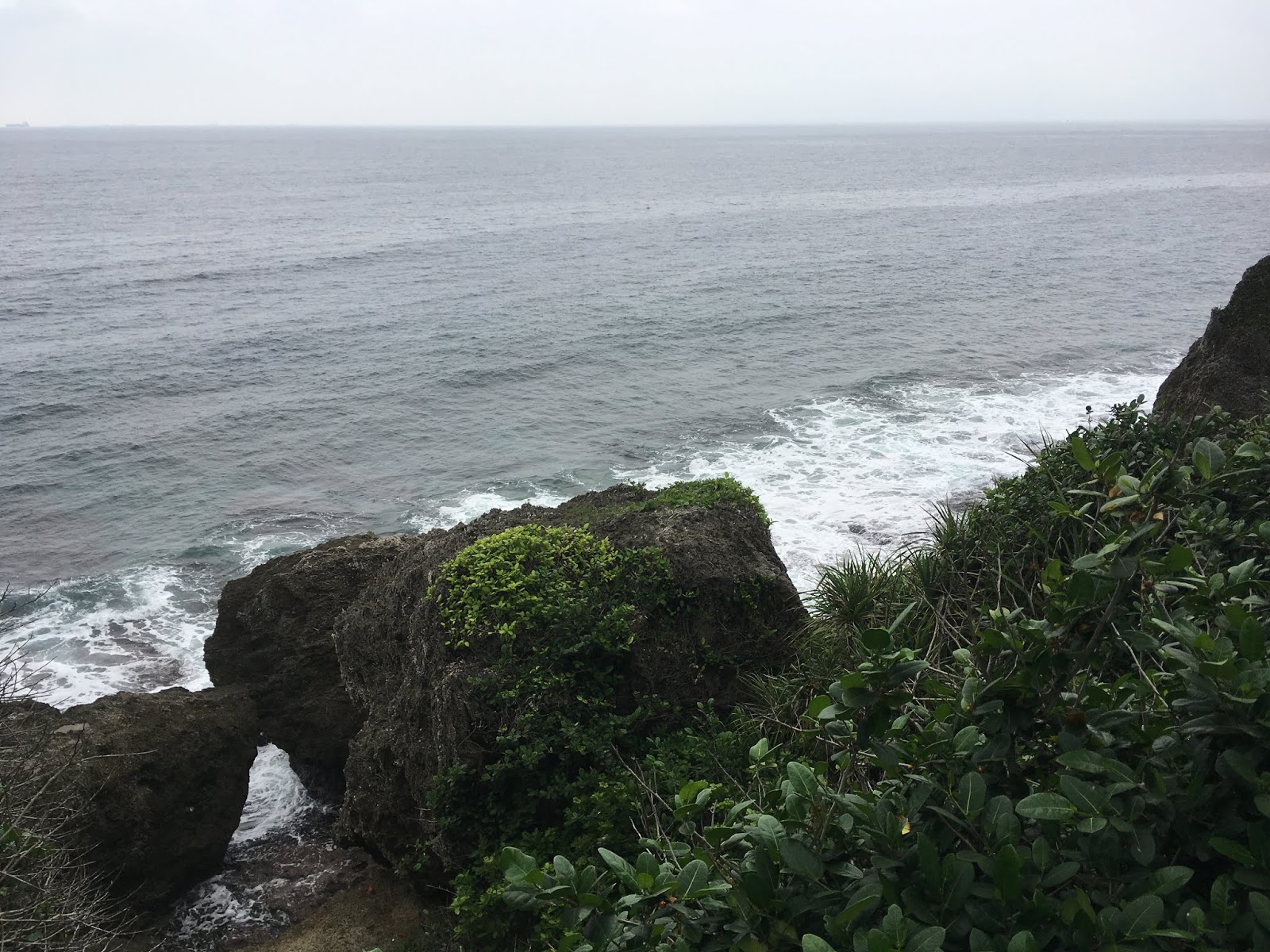 「山豬溝」是沿著天然珊瑚礁地形而開發的景點,木棧道走起來很輕鬆,兩旁生長著雀榕及攀藤植物,走來舒爽宜人。印象最深的是如同泰山壓頂的「礁岩石洞」,低下身子穿過時很有壓迫感,以及低矮帶狀的「防空洞」,也讓我驚嘆以前人在裡面躲避空襲,柔軟度實在太好了。