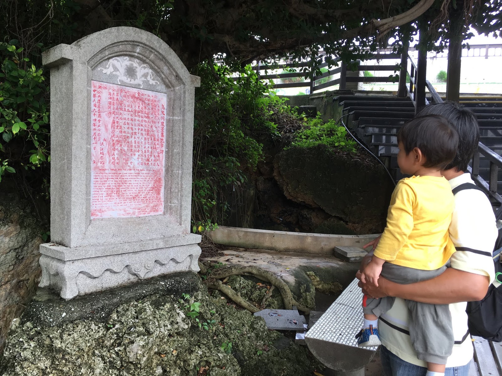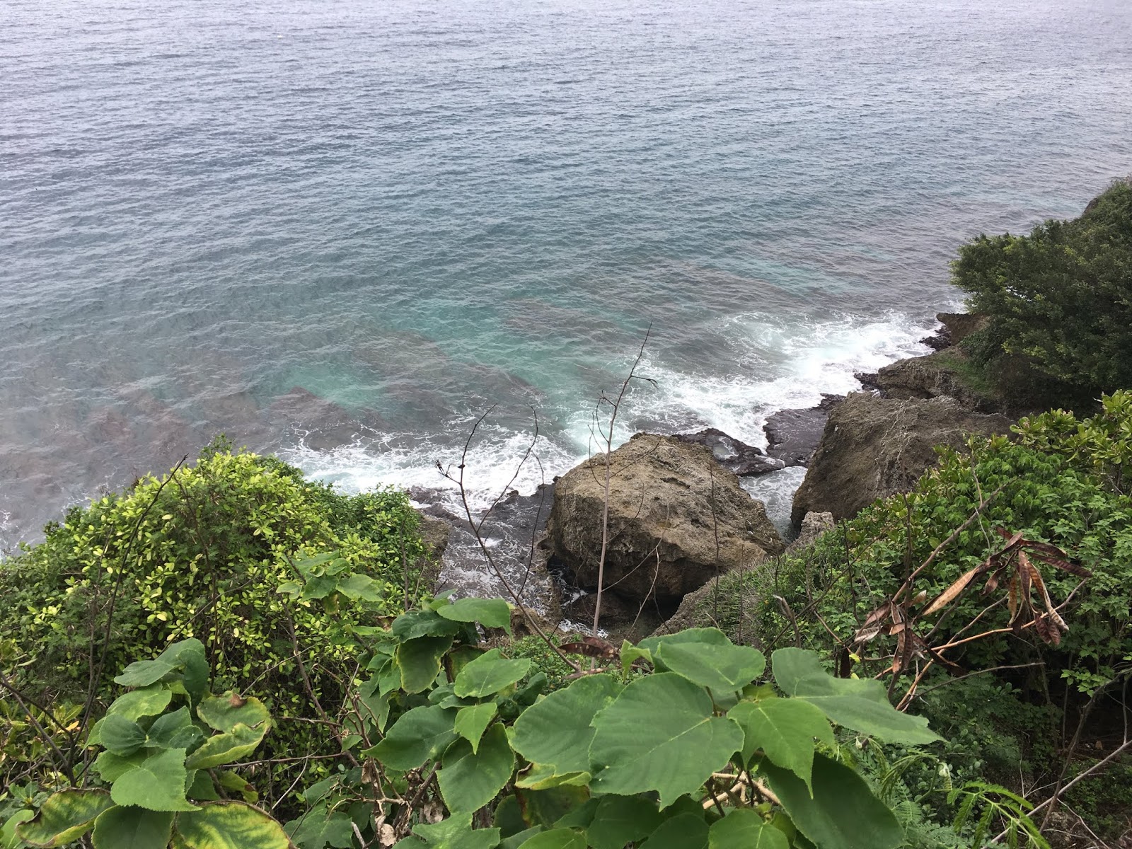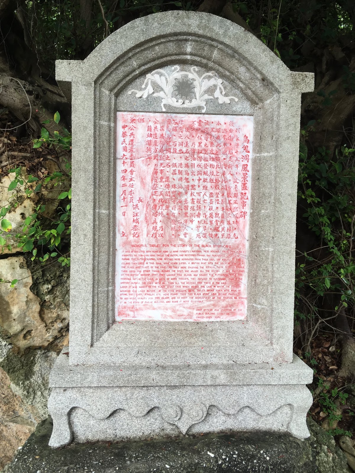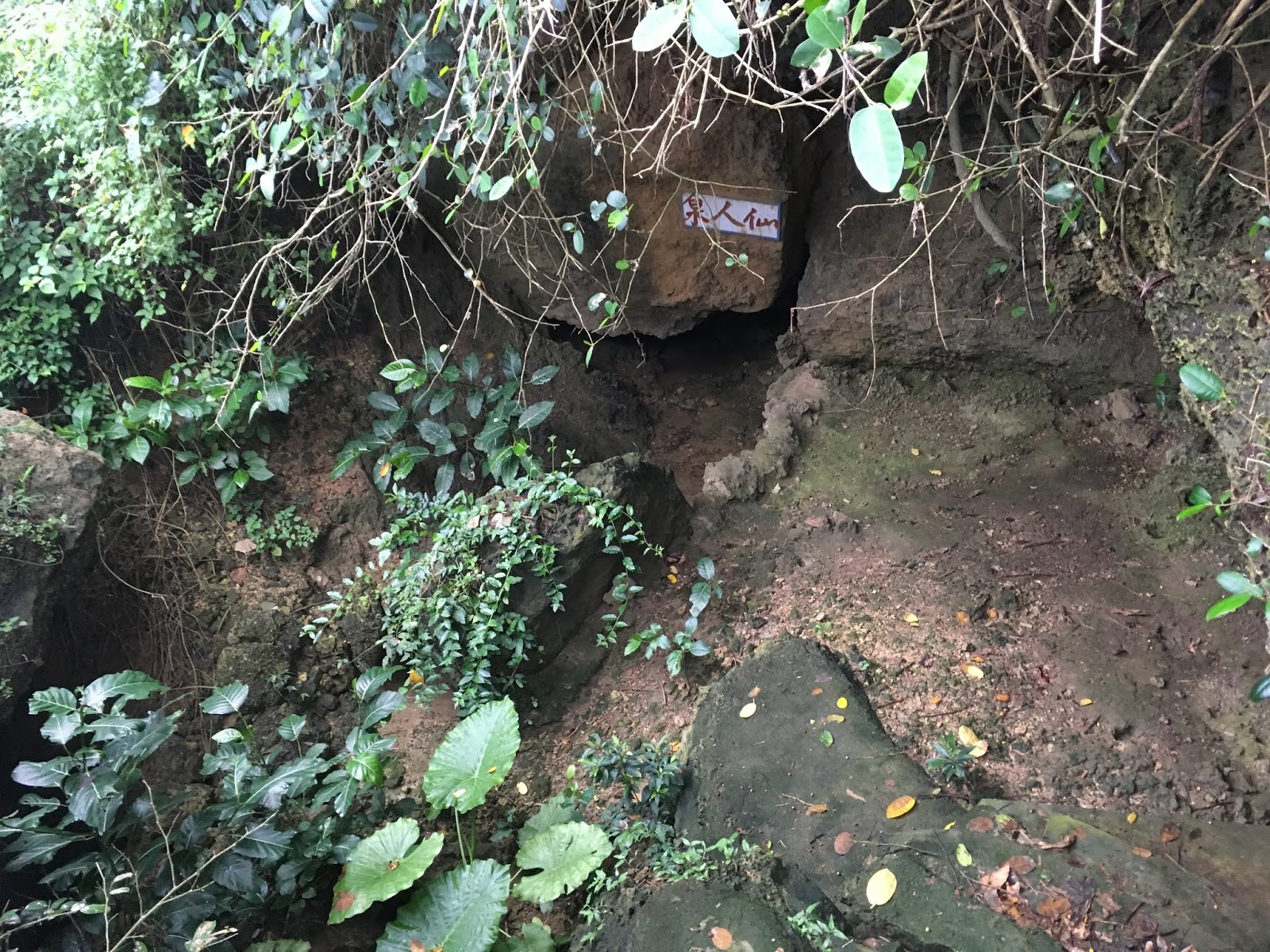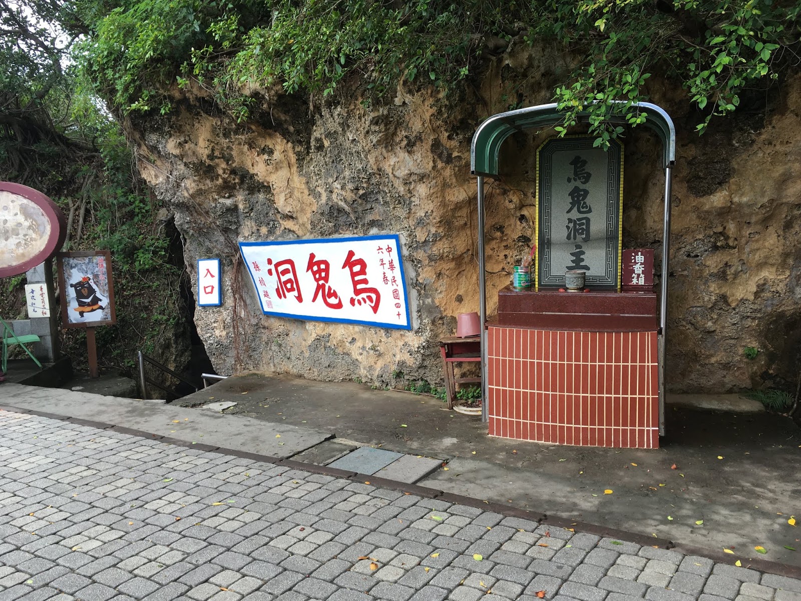 來到夜間導覽提到的「烏鬼洞」,白天看起來沒有傳說中那麼可怕,就是狹窄的礁岩洞穴,只是看了「烏鬼洞記事碑」上所述說的故事,想到是小琉球原住民罹難處,我還是不太敢進去呀。