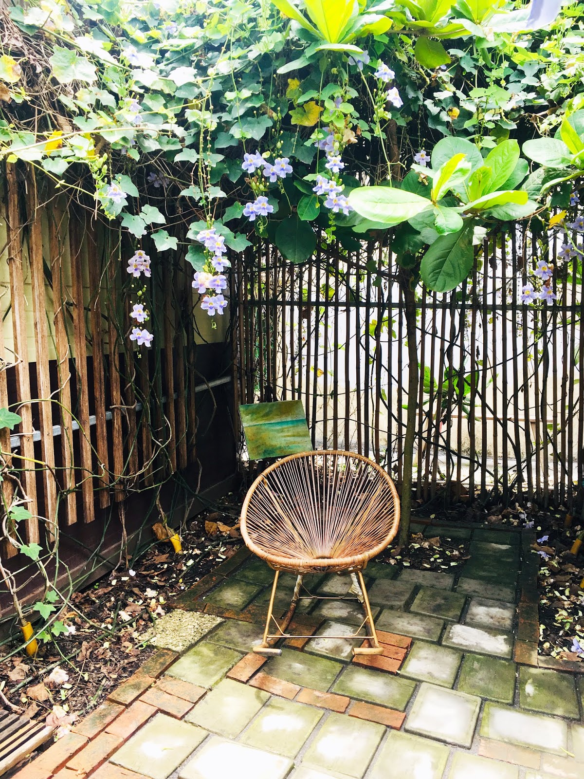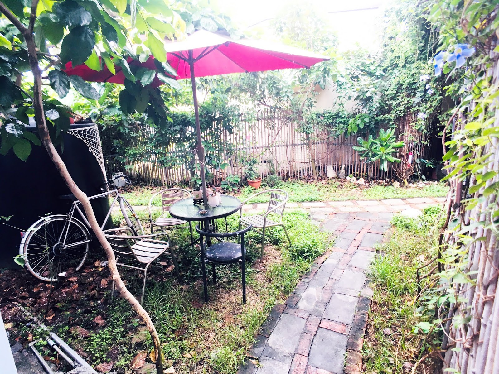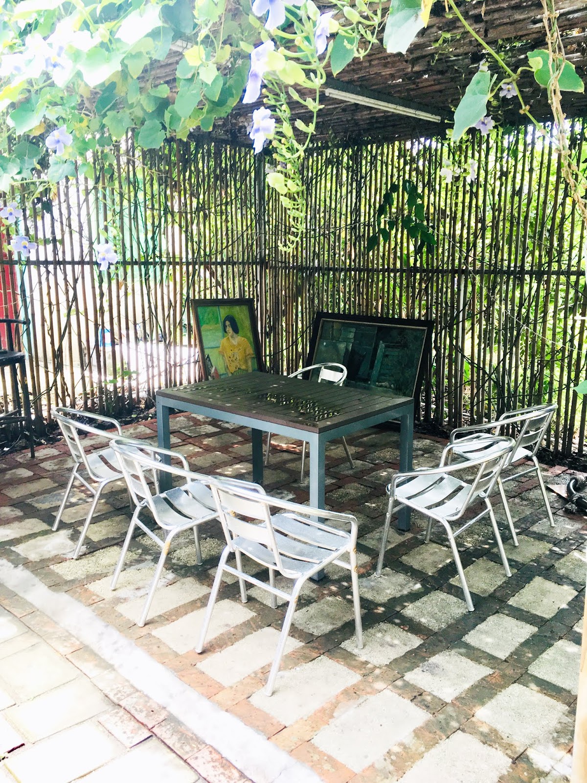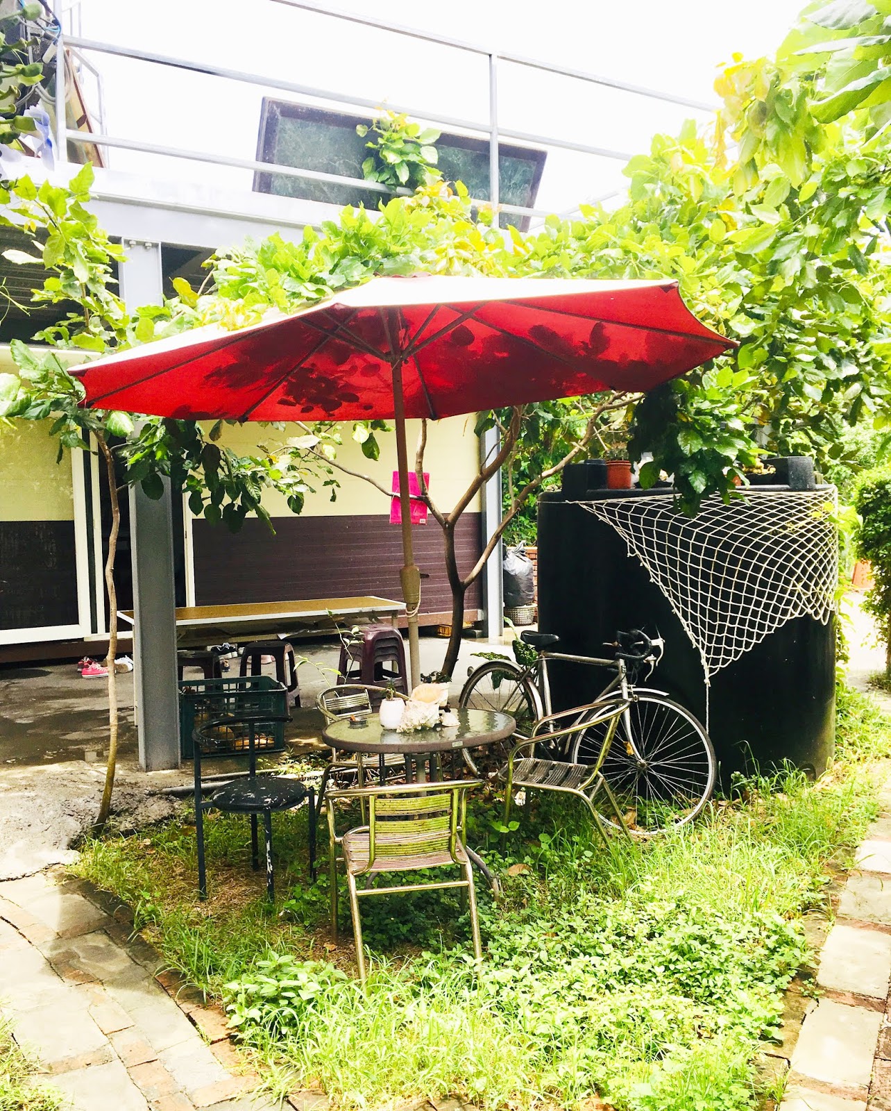 一樓門口的左側有個充滿綠意的庭院,竹圍裡飄散淡淡花草香,多個座位區很適合親友聚會聊天,無論是任何季節來都有俯拾即景的雅致景色,頗富詩意。