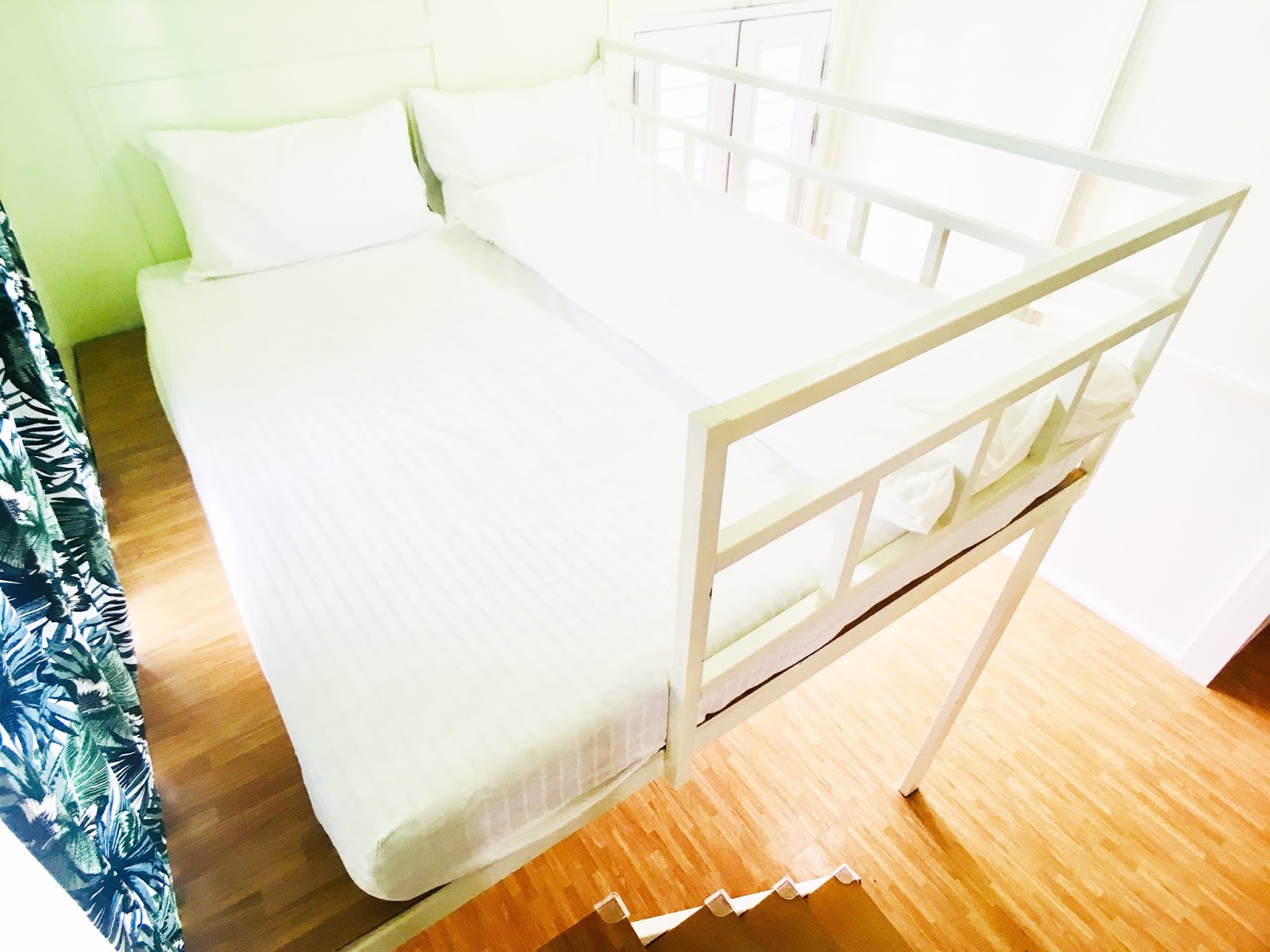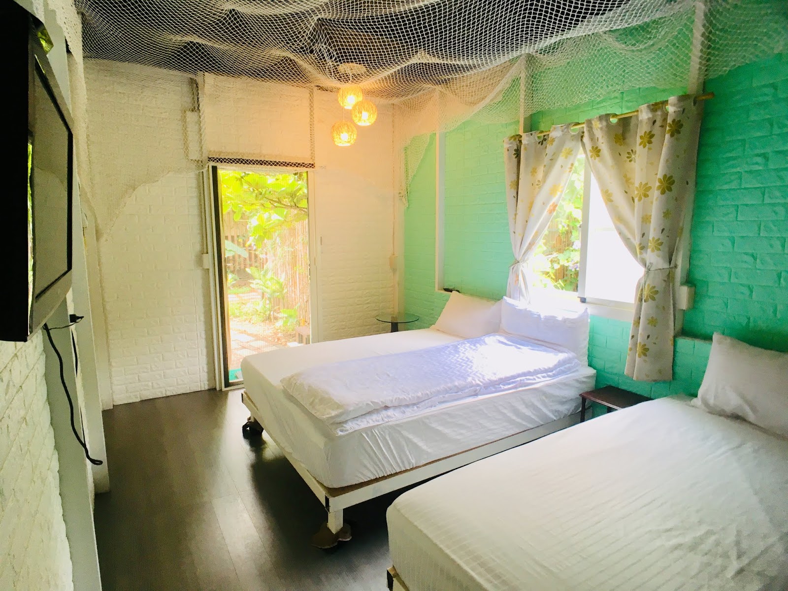 可住2至4人的「春天房」,薄荷綠色調營造出生機盎然的春意,兩大張獨立筒雙人床相當舒適,在房內就聽得到樹梢上鳥兒的歌唱,聞得到花草芬多精的香氣,真的有鳥語花香的感覺呢。