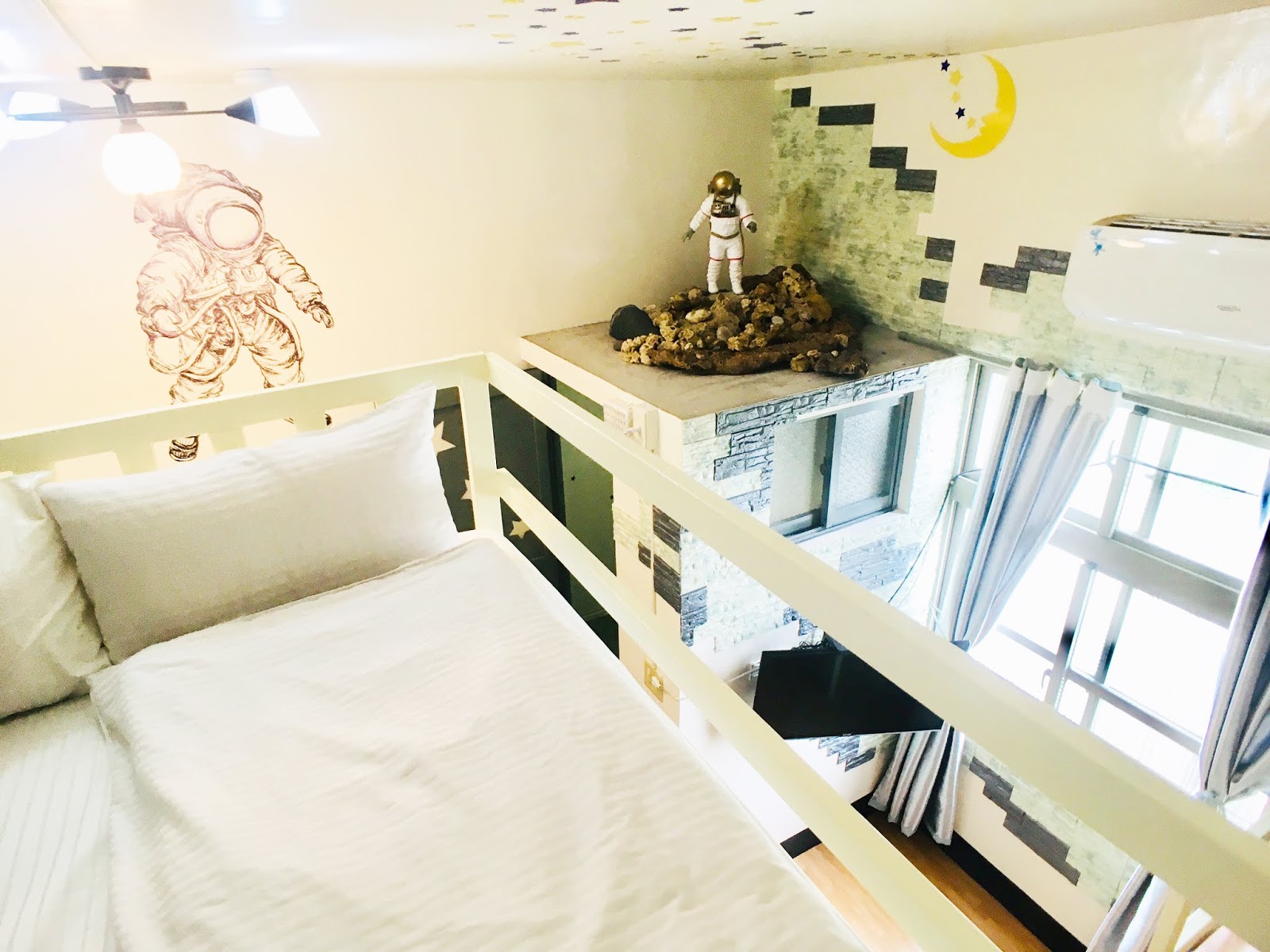 「番仔厝民宿」真的可以說是花爸和花媽親手打造,全棟空間都是夫妻倆設計,包括室內設計、牆上的手繪畫作、釘床架、鋪地板都是他們DIY,因此入住時,也像欣賞有溫度的互動式藝術。