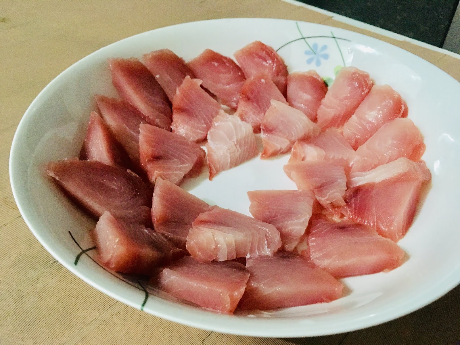 我們準備上樓就寢,經過廚房時,看到花爸正切著厚實的生魚片,一問之下竟是黑鮪魚!花爸打趣說這是小琉球人的宵夜,台灣本島的我們看著覺得好幸福啊。