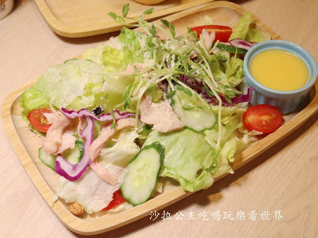 爽脆的生菜一開始直接吃,後來沾一點獨家的芒果醬,提升風味,我還是第一次自己吃掉一大盤生菜沙拉