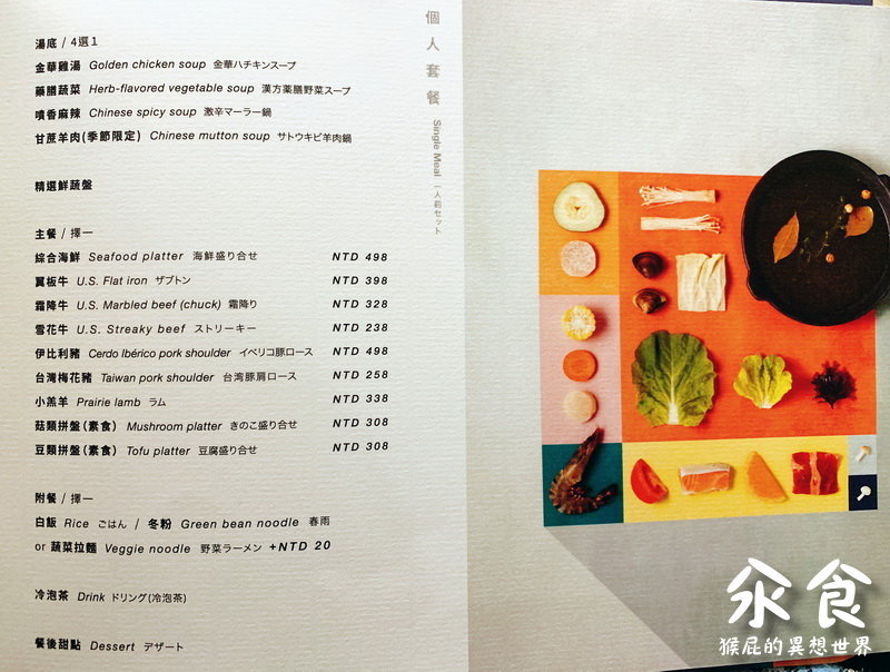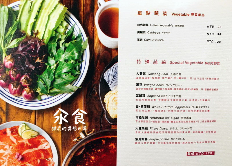 汆食作伙鍋詳細菜單