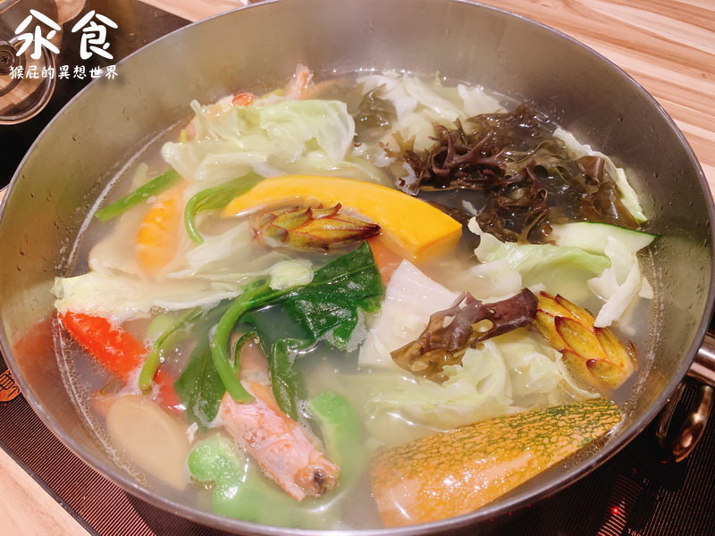 蔬菜海鮮放入帝王蜆鍋吸附湯汁,蔬菜也變的鮮甜可口