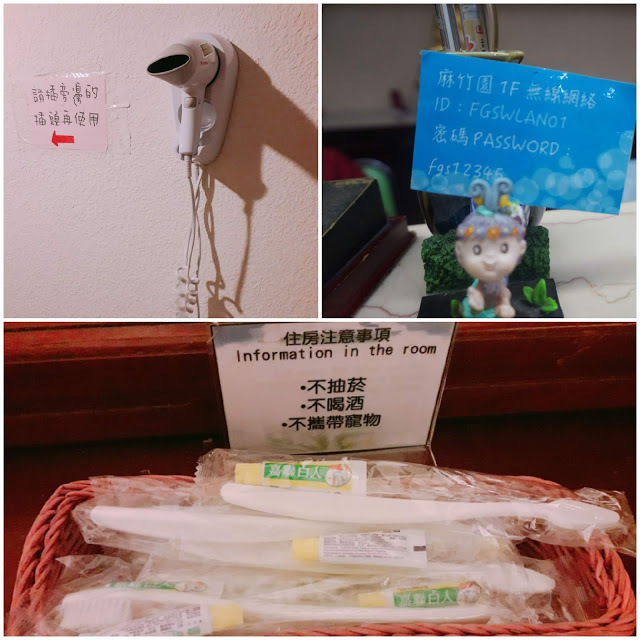房內有簡易的盥洗用具,吹風機在門外共同使用,佛光山麻竹園Wify只有1F才有提供,難得享受一天沒有電子設備的甘擾,心都平靜了起來~