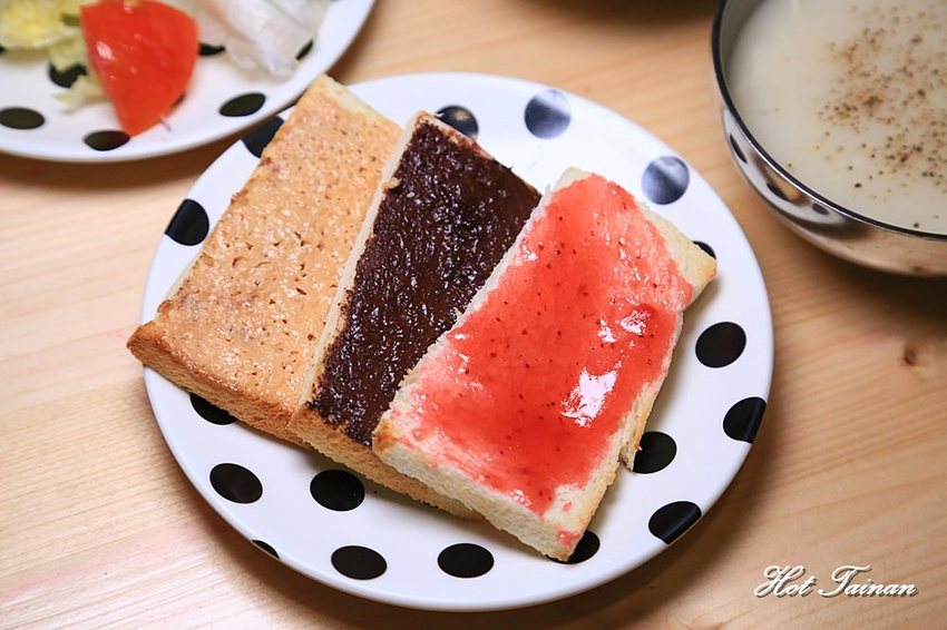 店內提供免費享用的烤土司,想吃甚麼口味想吃多少就自己來吧!一旁的玉米濃湯也是可以讓你免費喝到飽,吐司搭配玉米濃湯經典不敗吃法!