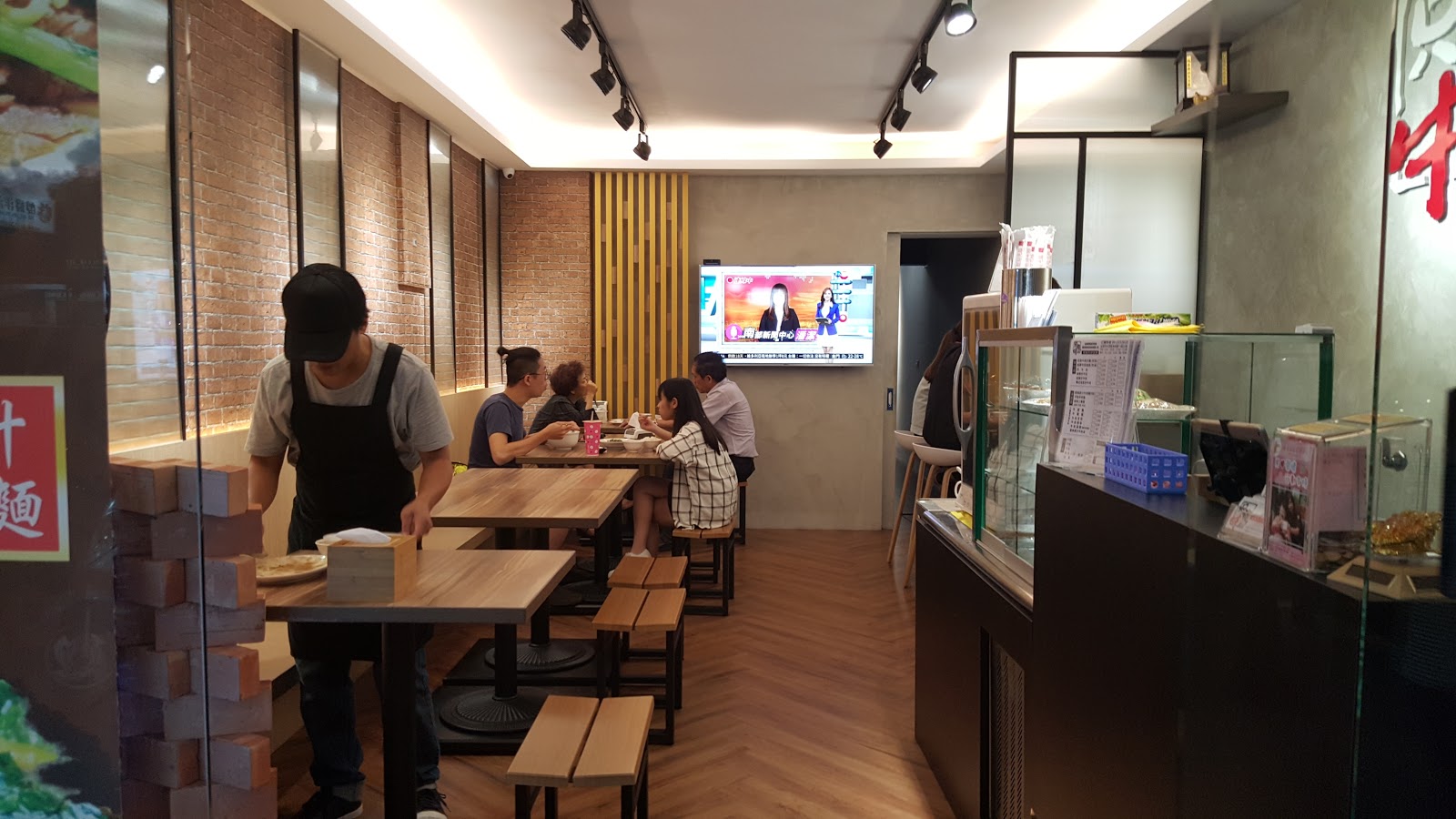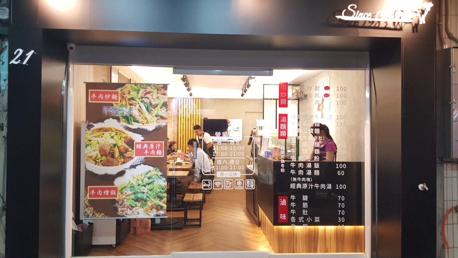 落地窗為門面,從外面望進去覺得用餐環境十分舒適,裝潢簡約光線充足。菜單及招牌菜顯示在玻璃上,一目了然。
