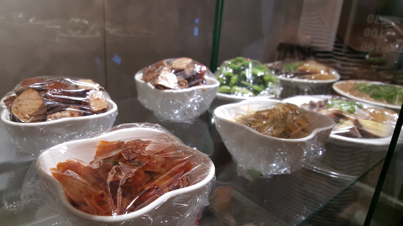 櫃檯旁邊有小菜櫃,讓客人自行拿取。這天有看到滷菜、毛豆、泡菜,種類不多,但看上去滿可口的。