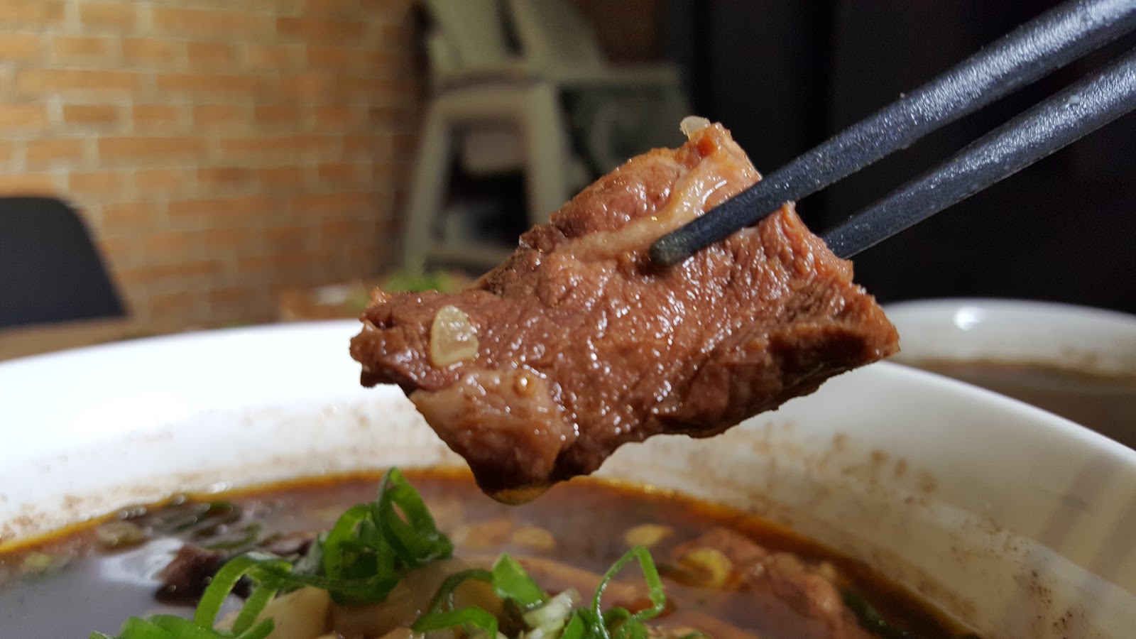 只有牛的湯頭做法是將整塊牛肉放進鍋中煮,加入中藥、醬油和香料,牛肉的蛋白質、肌質漸漸地化入湯中,一邊滷牛肉,一邊熬湯頭。湯味道相當濃郁,一勺下肚,身體也跟著暖了起來。