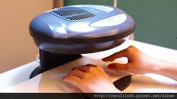 最後再用了指緣油、護甲油、以及指甲油,然後還有很酷的一台機器烘乾指甲油~