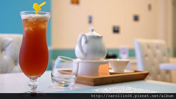 我點了黑醋栗還是黑嘉麗的柳橙冰茶,男友點了熱帶水果茶,我的茶味道甜甜的不過頭,還不錯。