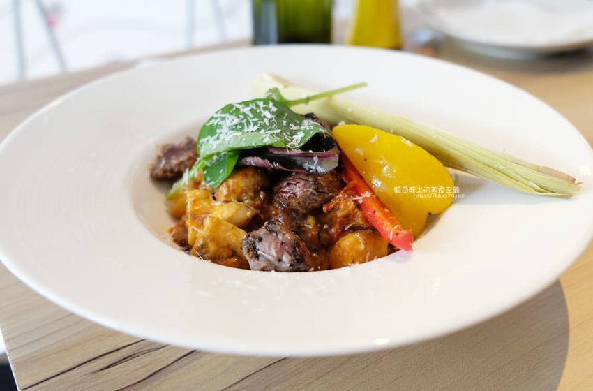 手工自製馬鈴薯Gnocchi,炸過再下去拌炒,入味,口感又讚,有點厚度吃來鬆軟但又有點嚼勁,讓純綾也邊吃邊說好吃~