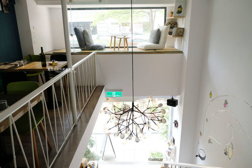 二樓的前面空間,可以看到最前方有塌塌米座位區,這裡不能用餐,坐在這裡也滿有趣的,做日光浴喝飲品吃甜點~
