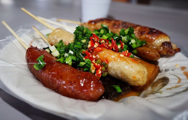 【苗栗美食】阿鄭伯古早味小吃 – 超隱藏在地30年美食小吃.香腸雞肉捲黑輪.特製韭菜醬油和辣醬.高架橋商場內.鐵皮屋麵店和核果烘焙屋及金栗成蛋糕旁.苗栗高中附近