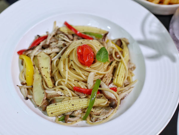 ▫️最後的素食義麵也沒讓我失望,帶有鑊氣、薑味的清炒麵條,暖心暖胃,吃素的朋友來這邊可以點這道(純素/五辛素可與店家溝通)。