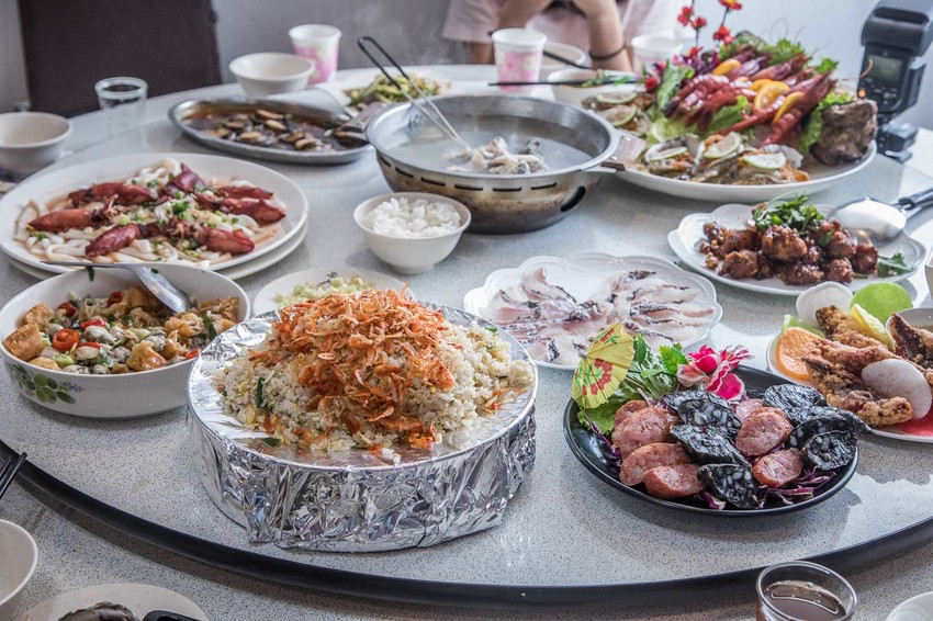 新環港海鮮餐廳的料理價格真的相當實惠,人越多可以品嘗到越多樣化的料理,這一桌滿滿的各式海鮮料理多少錢?大概只要4000元左右,平均一個人大概500元就可以吃得超飽又精緻