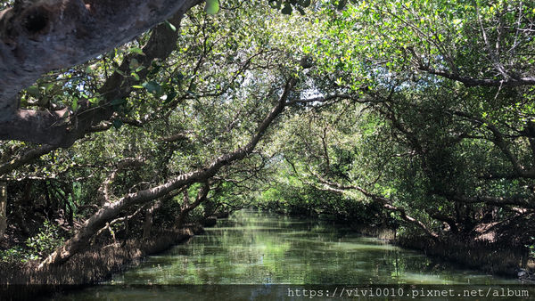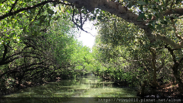 終於開進了綠色隧道,各種不同植物盤根交錯,水中的倒影是拍攝重點